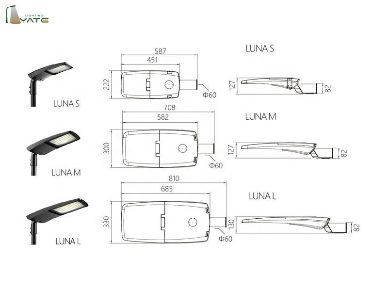 – Excellent heat radiation,Optical and electrical ability. – Die-casting Aluminum body with power-coating and anti-corrosion treatment. – Humanized design concept,easy to install and maintain. – Luminaire available in 30w-200w. – Body made of injected die-cast aluminum. – Polyester powder coating.Any colour available. – Color Temperature: 3000k-6500k. – High recyclability rate.
